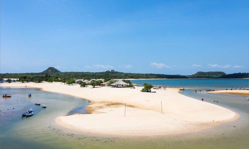 O cenário da longa faixa de areia branca cercada de águas transparentes e barquinhos coloridos, repleta de cabanas de palha e com um grande morro verdejante ao fundo deu a Alter do Chão o status de um dos destinos de praia mais bonitos do Brasil (segundo o The Guardian). Localizada bem de frente à vila de Alter do Chão, a Praia Ilha do Amor é o principal destino dos turistas na região.